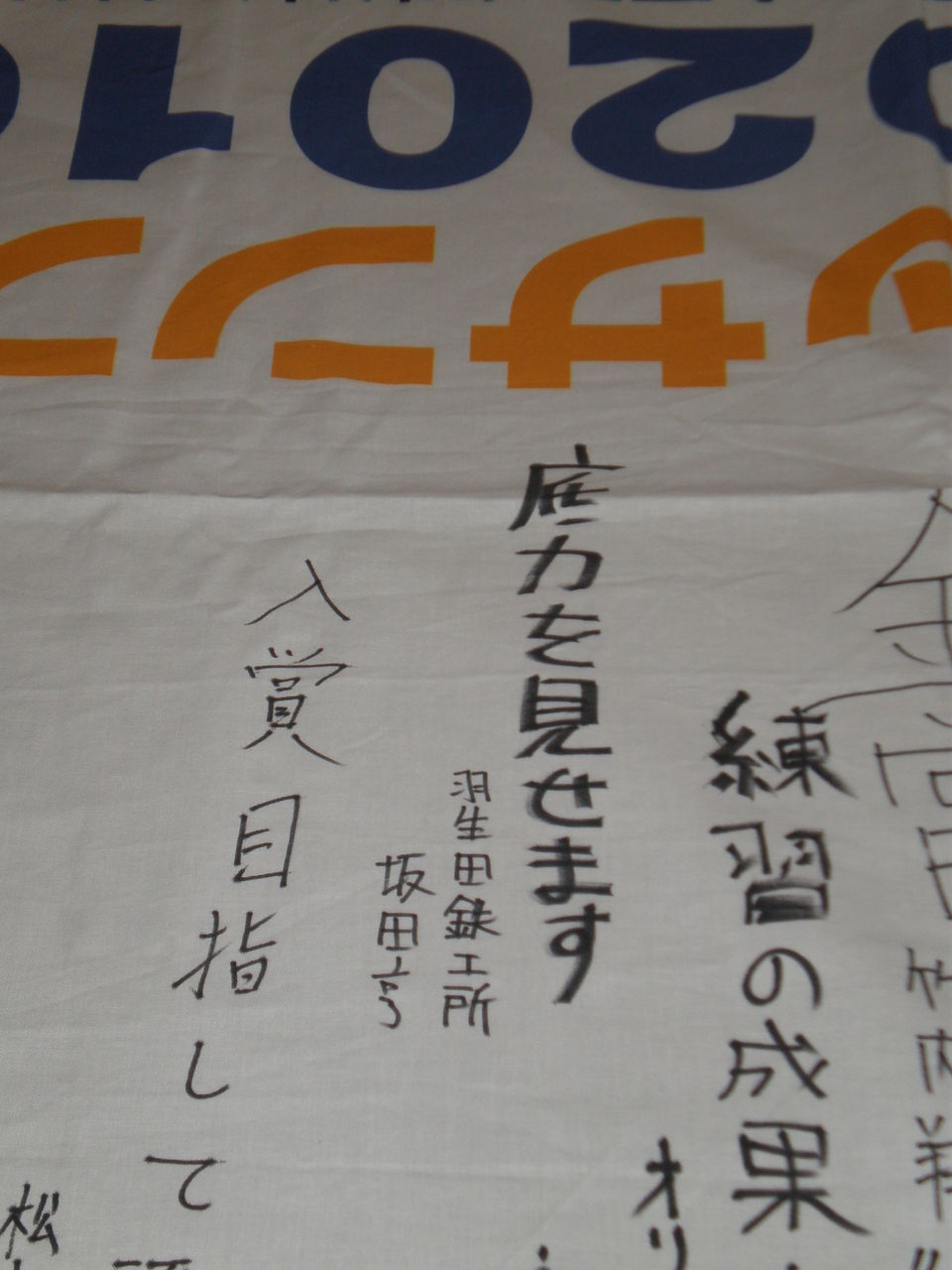西山勝巳選手と 寄せ書きの前でパチリ