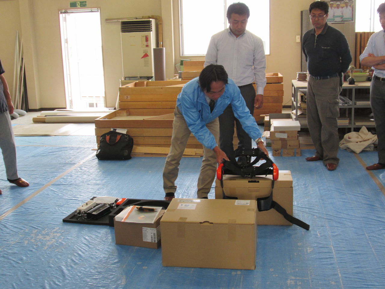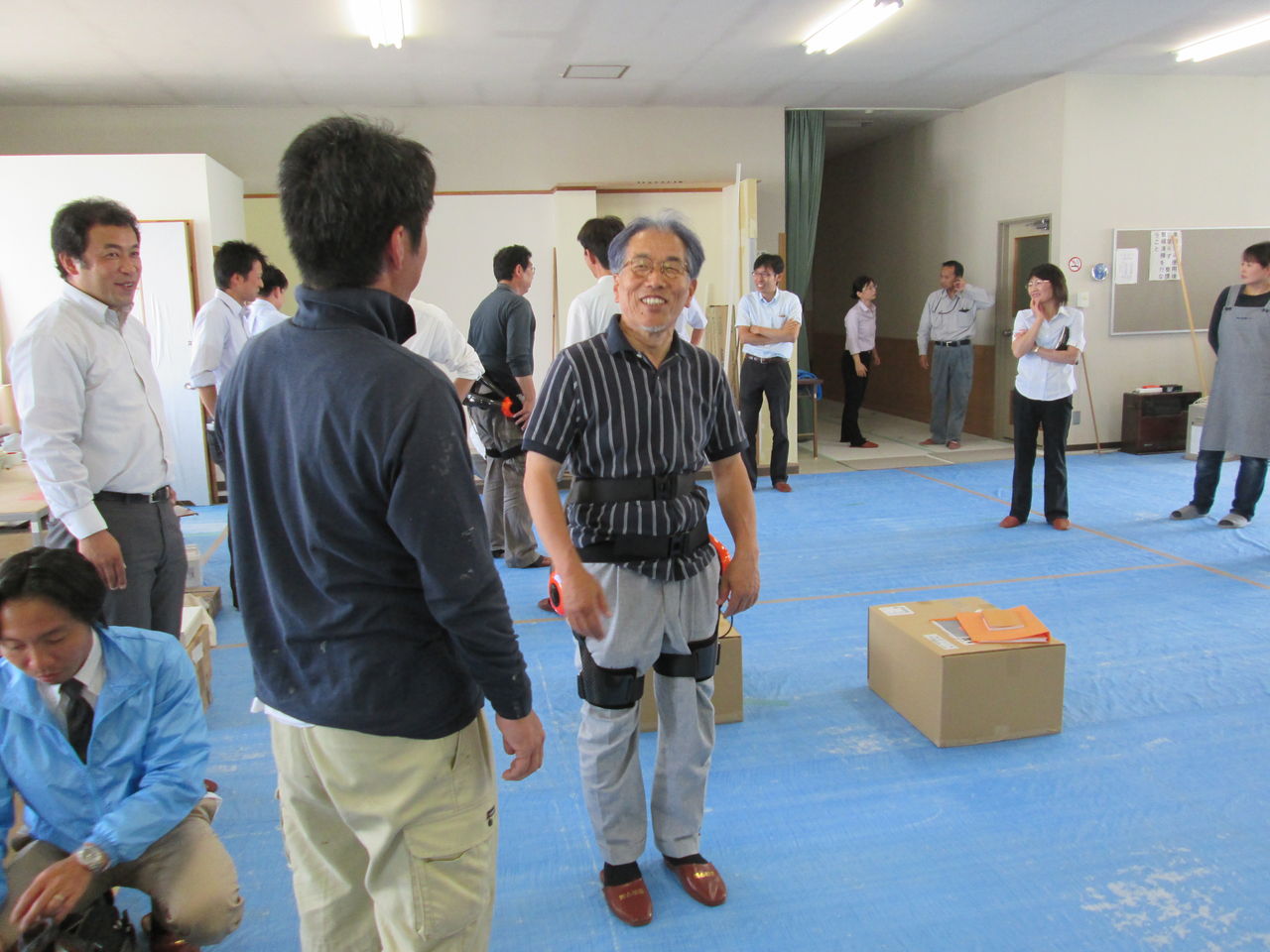 岩野商会 社長岩野様にも装着して、HALのアシストを体験して頂きました