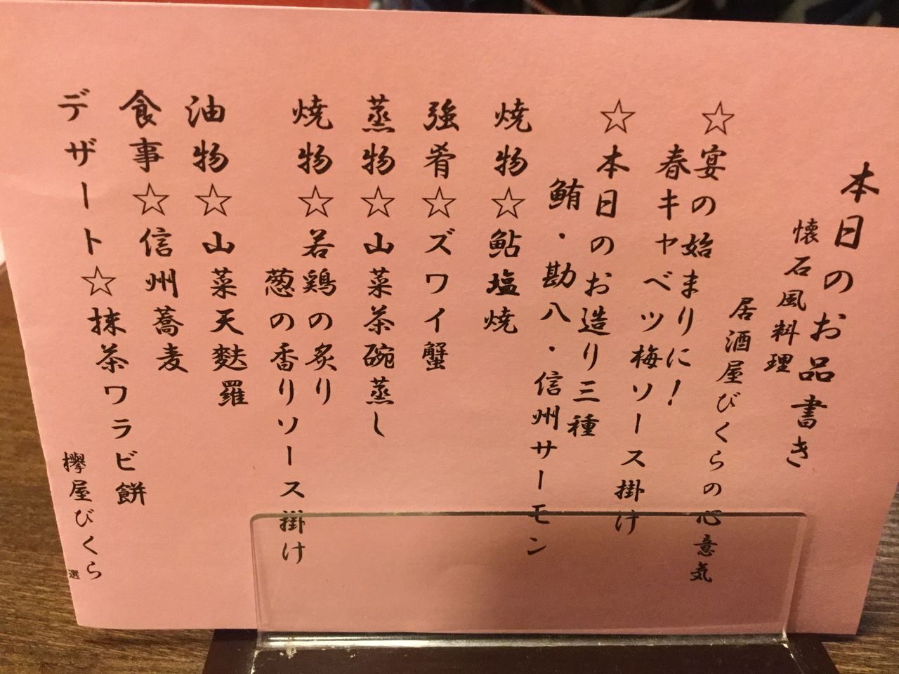 今回のお品書き