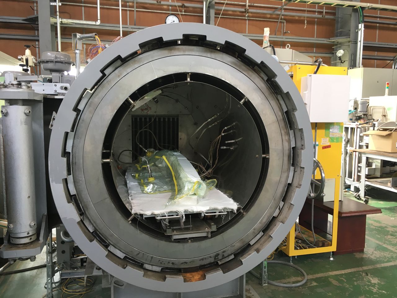 ・CFRPプリプレグ、副資材の積層作業、バギング、オートクレーブによるキュア、取り出し