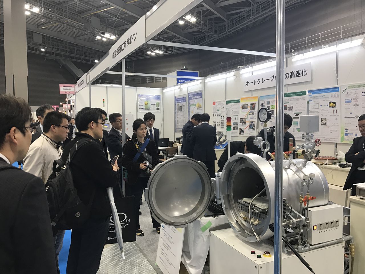 今回、当社は3コマ分のブーススペースをどどーんと使って、サポインで開発中のハイサイクルオートクレーブ装置と、おなじみの小型オートクレーブ「ダンデライオン」を展示しています![]()